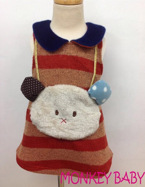 優寶購物《ubao.Tw》特貨品商城,黑貓宅配,取貨付款,全館滿699免運【MONKEY BABY 】毛線料內裡小刷毛保暖小熊橫條背心洋裝 | Yahoo拍賣