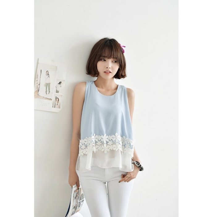 優寶購物《ubao.Tw》特貨品商城,黑貓宅配,取貨付款,甜美鏤空蕾絲花朵花瓣雙層雪紡無袖背心-粉 | Yahoo拍賣