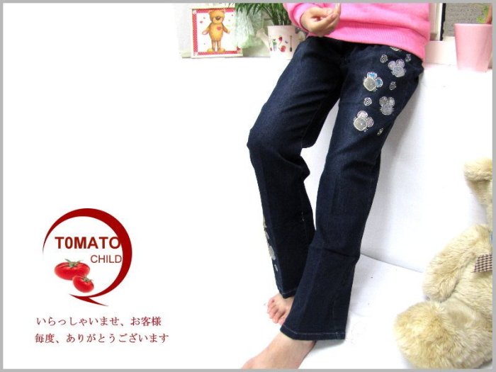 優寶購物《ubao.Tw》特貨品商城,黑貓宅配,取貨付款,《蕃茄丁》115CM/中大童‧出清【2G23C7757】可愛小老鼠貼布繡牛仔褲‧中直筒(深藍) | Yahoo拍賣