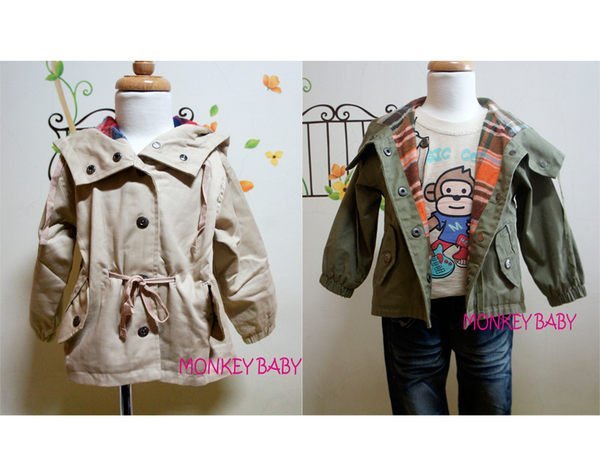 優寶購物《ubao.Tw》特貨品商城,黑貓宅配,取貨付款,全館滿699免運【MONKEY BABY 】超時尚風衣式連帽外套有腰深設計2色可選(男女皆可) | Yahoo拍賣