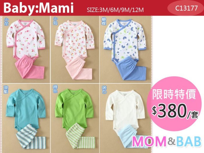 優寶購物《ubao.Tw》特貨品商城,黑貓宅配,取貨付款,貝比幸福小舖【13177】mom and bab可愛繽紛側釦新生兒包屁衣+長褲 套組 | Yahoo拍賣