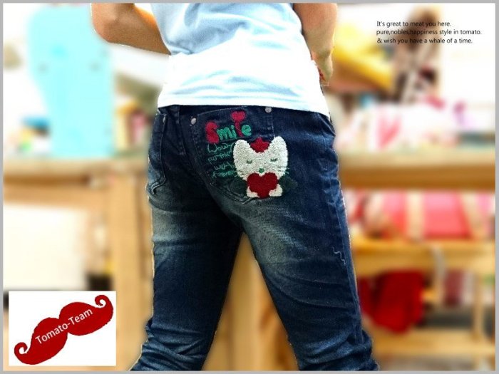 優寶購物《ubao.Tw》特貨品商城,黑貓宅配,取貨付款,《蕃茄丁》出清130'150CM【4GC20623】毛絨立體貓咪‧抓皺刷洗色牛仔長褲‧厚款/中大童 | Yahoo拍賣