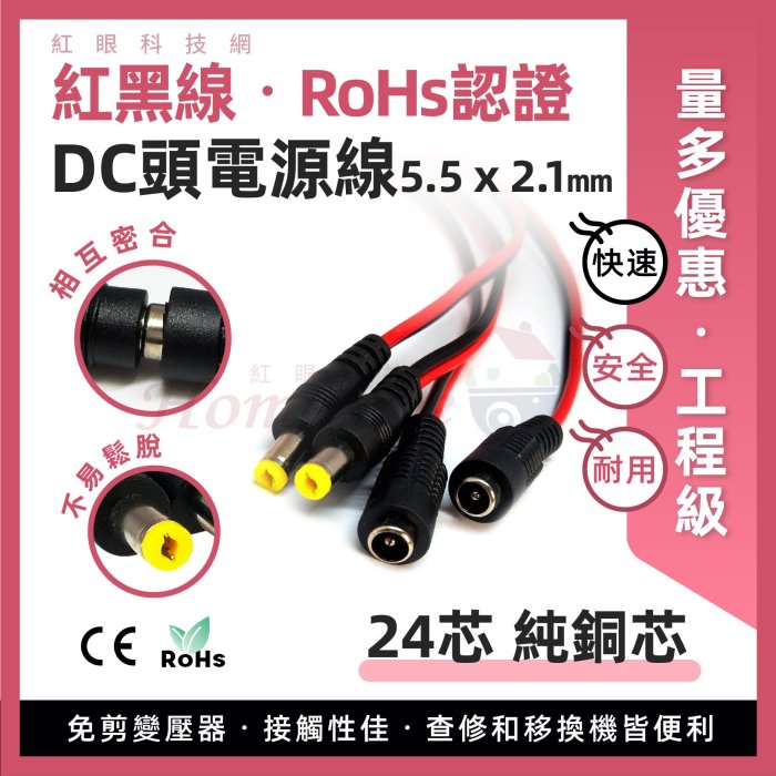 優寶購物《ubao.Tw》特貨品商城,黑貓宅配,取貨付款,紅黑電源線🚀單條 純銅 24芯 DC12V 24V RoHS認證 🚀 5.5x2.1㎜ 公頭母頭 監視器電源接頭 | Yahoo拍賣