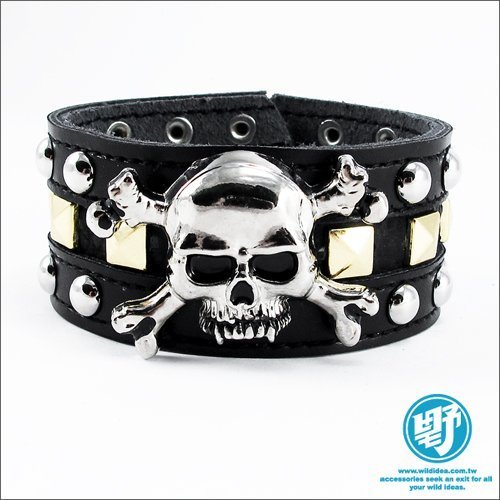 優寶購物《ubao.Tw》特貨品商城,黑貓宅配,取貨付款,【野點子 Wild Idea】金色方釘骷髏造型手環-街頭.卯釘.龐克.金屬.ROCK.真皮手環.手工製作!! | Yahoo拍賣