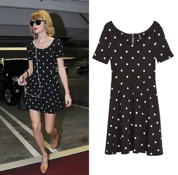 優寶購物《ubao.Tw》特貨品商城,黑貓宅配,取貨付款,Meico Fashion 美可時尚 H&M 國民小天后 Taylor 穿搭款 舒適棉質點點洋裝 (現貨) Sale~ | Yahoo拍賣