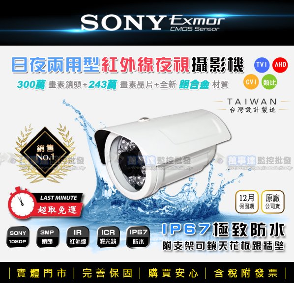 優寶購物《ubao.Tw》特貨品商城,黑貓宅配,取貨付款,【萬事達監控批發】SONY 1080P 300萬鏡頭 8顆 陣列LED 紅外線 防水 夜視攝影機 監視器 AHD TVI | Yahoo拍賣