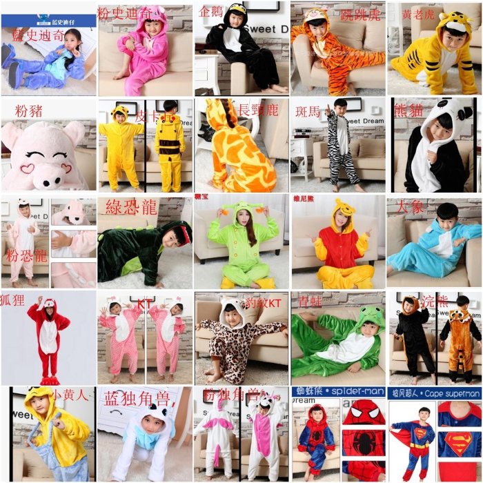 優寶購物《ubao.Tw》特貨品商城,黑貓宅配,取貨付款,(小樹的店)粉恐龍長頸鹿粉豬粉獨角獸熊貓跳跳虎兒童連身睡衣睡袍 家居服 派對晚會造型服(15款可選) | Yahoo拍賣