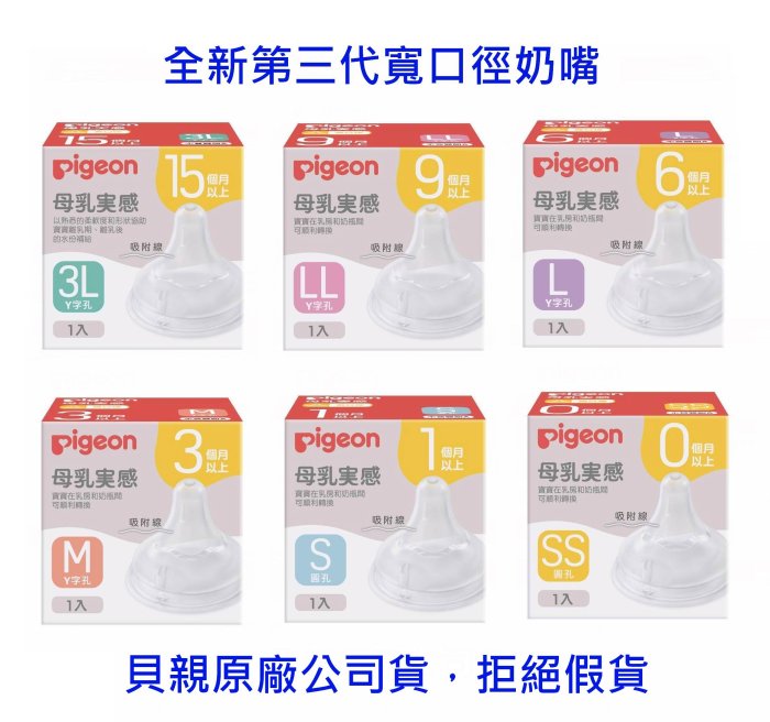 優寶購物《ubao.Tw》特貨品商城,黑貓宅配,取貨付款,附發票、拒絕假貨《凱西寶貝》Pigeon 貝親第三代寬口徑奶嘴 ( SS、S、M、L、LL、3L ) | Yahoo拍賣