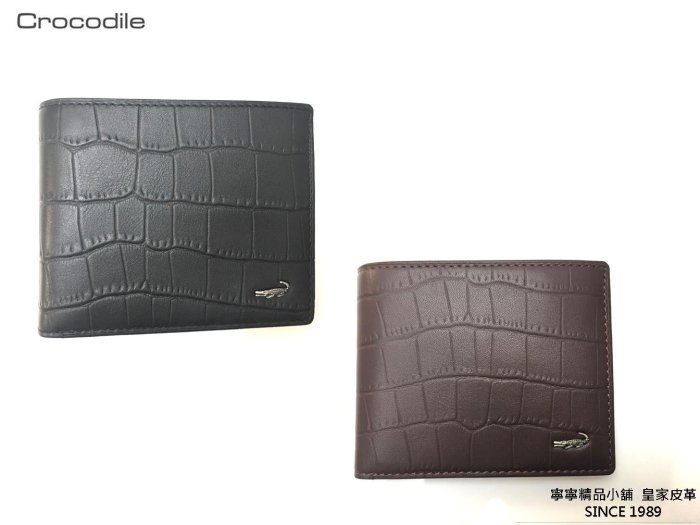 優寶購物《ubao.Tw》特貨品商城,黑貓宅配,取貨付款,【寧寧精品小舖*台中包包皮件皮帶30年店】Crocodile 牛皮壓紋真皮短夾 黑色=現貨 咖啡色 3771*7 | Yahoo拍賣