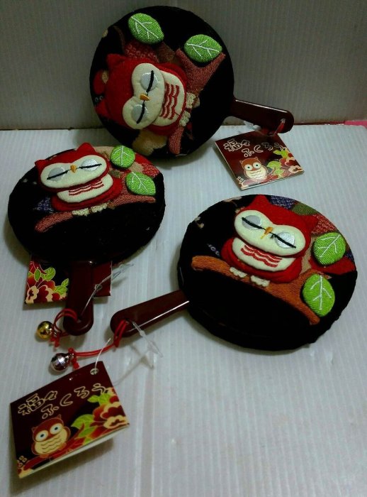 優寶購物《ubao.Tw》特貨品商城,黑貓宅配,取貨付款,龍廬-自藏出清~和風拼布招喜物語-貓頭鷹隨身手拿鏡 黑底紅色閉眼貓頭鷹/起標為單個價 | Yahoo拍賣