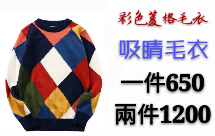 優寶購物《ubao.Tw》特貨品商城,黑貓宅配,取貨付款,彩色 菱格 拼接 拼布 修身 毛衣 格子 | Yahoo拍賣
