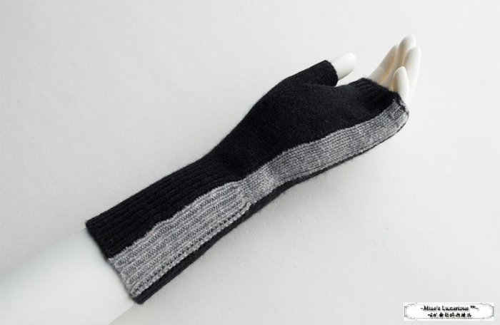 優寶購物《ubao.Tw》特貨品商城,黑貓宅配,取貨付款,德意志血統-可滑手機平板辦公打電腦-保暖發熱100% Cashmere黑撞色線條露指加長喀什米爾針織手臂套-另有花灰色 | Yahoo拍賣