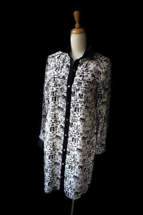 優寶購物《ubao.Tw》特貨品商城,黑貓宅配,取貨付款,*Beauty*Juicy Couture黑領黑白印花襯衫領長袖洋裝 WE16-12-26-13 | Yahoo拍賣