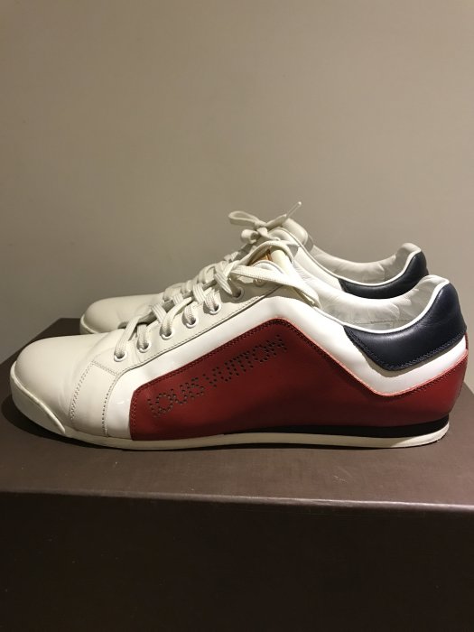 優寶購物《ubao.Tw》特貨品商城,黑貓宅配,取貨付款,[ 義 品 苑 ] LOUIS VUITTON 紅白藍 異材質拼接 休閒鞋 7.5 義大利製 LV | Yahoo拍賣