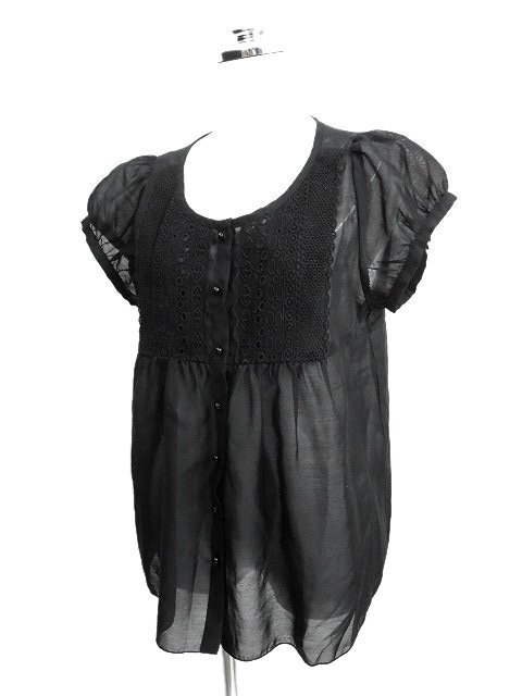 優寶購物《ubao.Tw》特貨品商城,黑貓宅配,取貨付款,日本品牌 LOWRYS FARM 黑色 蕾絲刺繡 雪紡大圓領襯衫 日本帶回 太平洋有櫃 | Yahoo拍賣