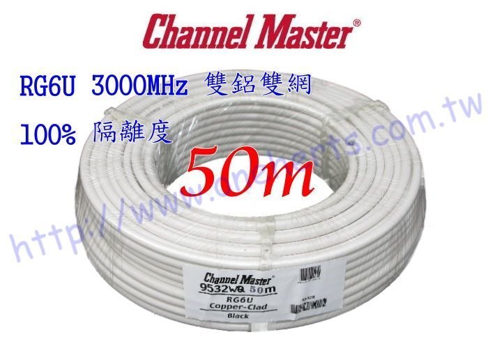 優寶購物《ubao.Tw》特貨品商城,黑貓宅配,取貨付款,萬赫Channel-Master 白色電纜50米裝 雙鋁雙網 3GHz/3000mhz RG6U 5C有線電視第四台 | Yahoo拍賣