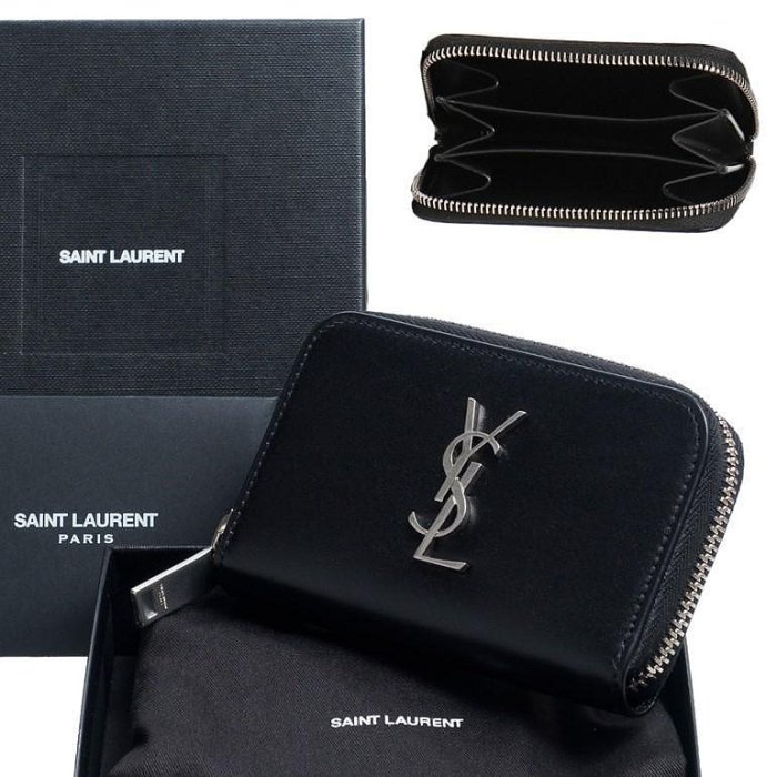 優寶購物《ubao.Tw》特貨品商城,黑貓宅配,取貨付款,【折扣預購】24春夏正品SAINT LAURENT 銀色logo黑色皮革拉鍊卡片短夾 零錢包535411 | Yahoo拍賣