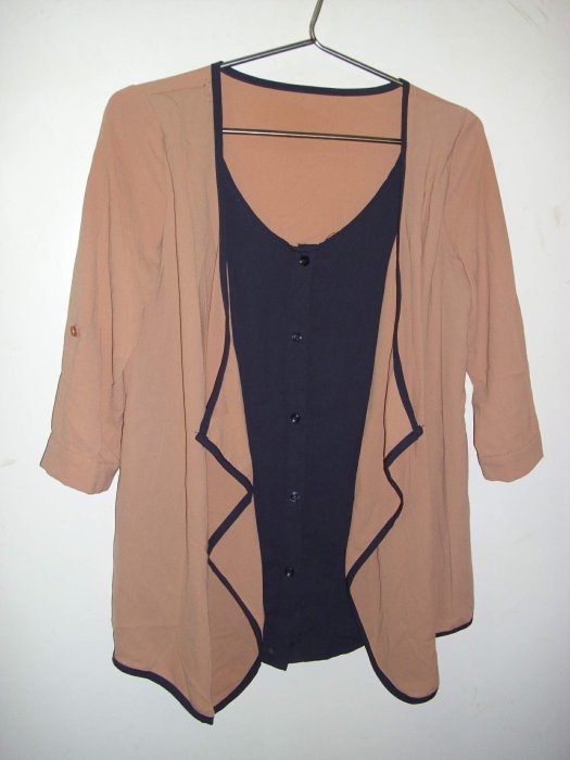 優寶購物《ubao.Tw》特貨品商城,黑貓宅配,取貨付款,潮流帥衣 韓風雙色棉紗兩件式設計款專櫃造型七分袖性感飄逸上衣 衣長70公分興字櫃H | Yahoo拍賣