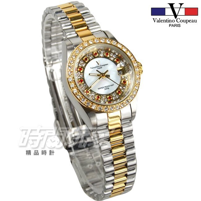 優寶購物《ubao.Tw》特貨品商城,黑貓宅配,取貨付款,valentino coupeau范倫鐵諾 奢華閃耀晶鑽指針防水手錶 女錶 金x銀 V12170紅鑽小【時間玩家】 | Yahoo拍賣
