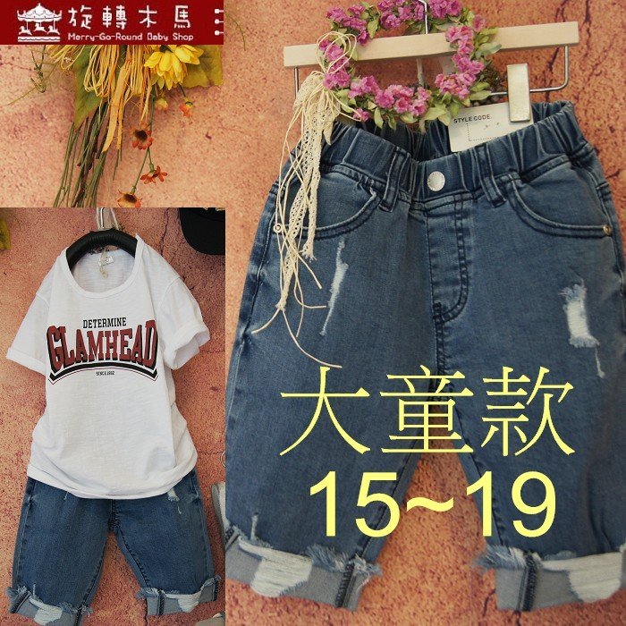 優寶購物《ubao.Tw》特貨品商城,黑貓宅配,取貨付款,旋轉木馬"加大碼"【181263】割破反摺牛仔六分褲 15~19號 | Yahoo拍賣