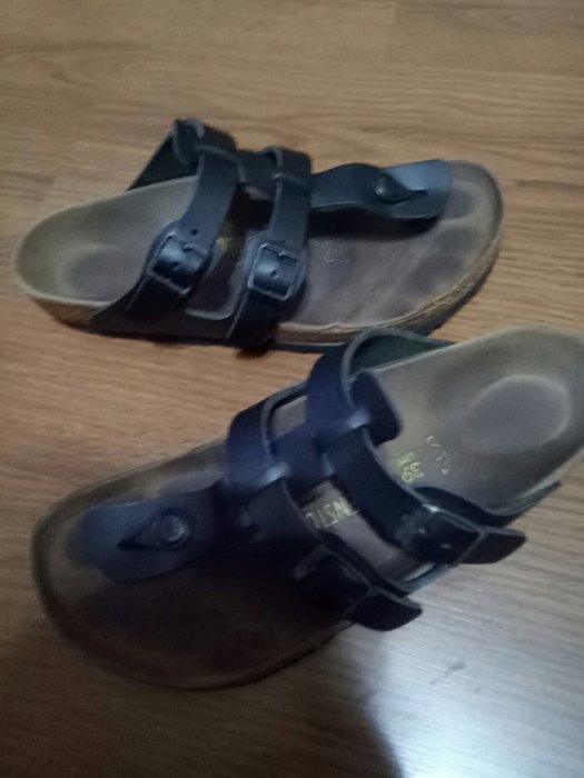 優寶購物《ubao.Tw》特貨品商城,黑貓宅配,取貨付款,專櫃品牌勃肯Birkenstock 黑色 真皮软木 夾腳拖鞋 39號 ~ 內長25不議價圖5有壓到(新椅袋)有使用痕跡 | Yahoo拍賣
