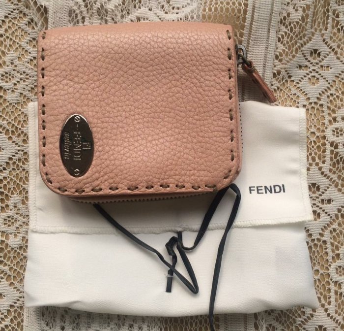 優寶購物《ubao.Tw》特貨品商城,黑貓宅配,取貨付款,228 ❤【凱莉呆】FENDI selleria 頂級手工縫線系列 粉橘 真品 正品 全真皮 鈔票 拉鍊 短夾 零錢包 | Yahoo拍賣