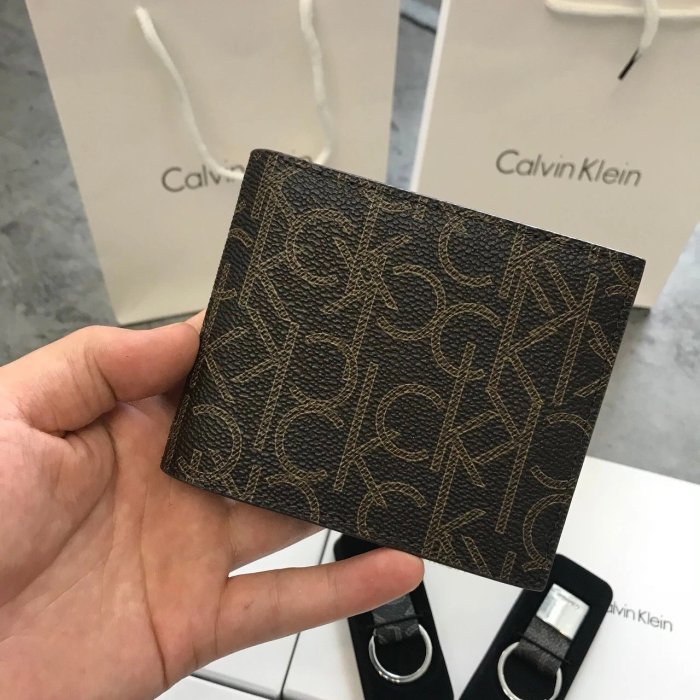 優寶購物《ubao.Tw》特貨品商城,黑貓宅配,取貨付款,Calvin Klein滿版對折皮夾 盒裝附紙袋鑰匙圈 棕色 | Yahoo拍賣