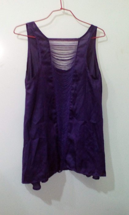 優寶購物《ubao.Tw》特貨品商城,黑貓宅配,取貨付款,潮流帥衣 韓風紫色絲質金屬光澤設計款性感U領美背鏤空透視造型背心 衣長68公分宜字櫃 | Yahoo拍賣