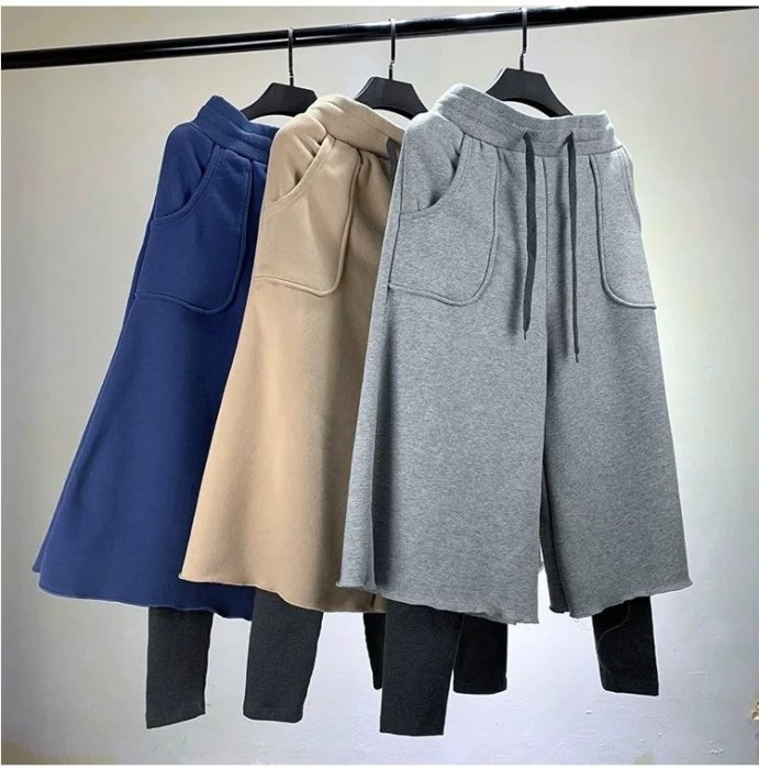 優寶購物《ubao.Tw》特貨品商城,黑貓宅配,取貨付款,大嫂的店-秋冬棉質休閒假兩打件拼接闊腿褲 三色 | Yahoo拍賣
