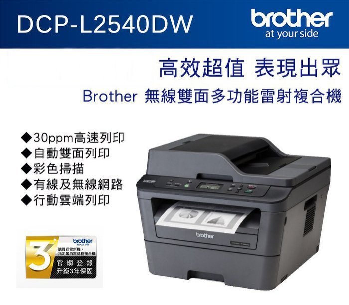 優寶購物《ubao.Tw》特貨品商城,黑貓宅配,取貨付款,【原廠授權維修商】Brother DCP-L2540DW 自動雙面列印 複印 有線及無線網路 雲端列印 雷射印表機 | Yahoo拍賣