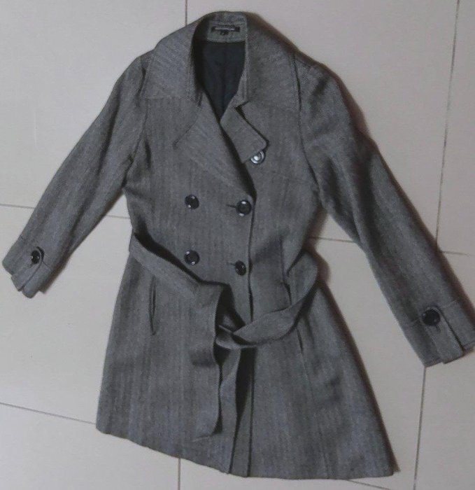 優寶購物《ubao.Tw》特貨品商城,黑貓宅配,取貨付款,(出清)日本專櫃NICE CLAUP 深淺灰交織羊毛斜呢紋路風衣型長大衣/外套。有內裡無彈性。logo黑釦腰繫帶尺寸2碼,前斜雙口袋,適合各種場合CLATHAS | Yahoo拍賣