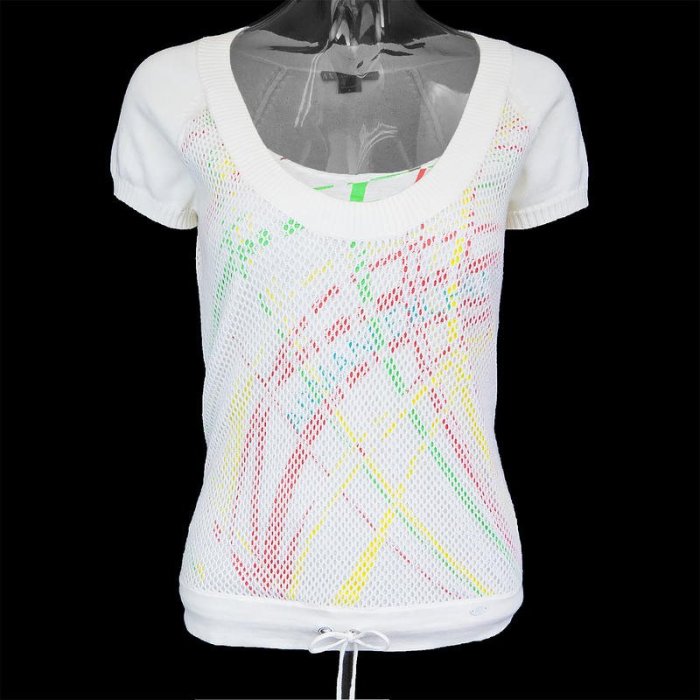 優寶購物《ubao.Tw》特貨品商城,黑貓宅配,取貨付款,義大利Armani exchange AX 亞曼尼白色網狀彩色線條插肩短袖針織衫 | Yahoo拍賣