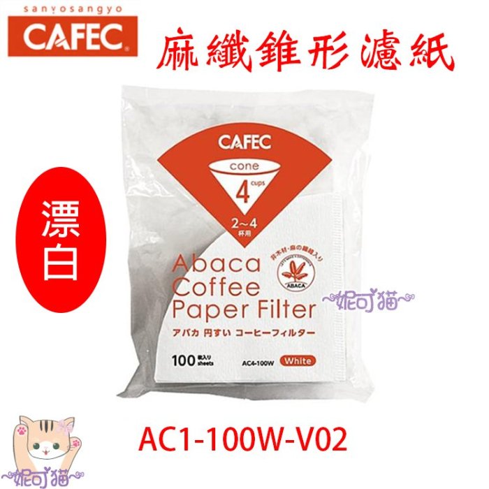 優寶購物《ubao.Tw》特貨品商城,黑貓宅配,取貨付款,日本製三洋 CAFEC 02 1~4杯 麻纖錐形濾紙V60 漂白 同KONO代工廠100入 AC4-100W | Yahoo拍賣