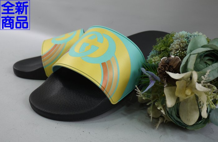 優寶購物《ubao.Tw》特貨品商城,黑貓宅配,取貨付款,優買二手精品名牌店 GUCCI 548703 GG 馬卡龍 藍 黃 海灘鞋 沙灘鞋 白襪拖 涼鞋 拖鞋 方便鞋 全新 | Yahoo拍賣