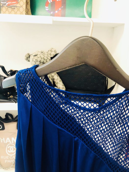 優寶購物《ubao.Tw》特貨品商城,黑貓宅配,取貨付款,A/X 寶藍色洞洞鏤空斜肩垂墜洋裝 | Yahoo拍賣