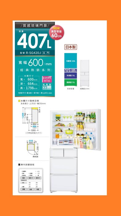 優寶購物《ubao.Tw》特貨品商城,黑貓宅配,取貨付款,讚~請發問】RSG420J日立冰箱407L 五門 60*66.9*179.8cm | Yahoo拍賣