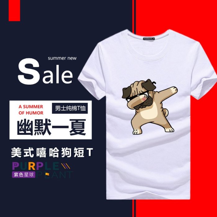 優寶購物《ubao.Tw》特貨品商城,黑貓宅配,取貨付款,【紫色星球】幽默一夏 KUSO單品 HIP HOP汪星人【T1299】 圓領短T 短袖上衣 短T 大尺碼 S-5XL | Yahoo拍賣