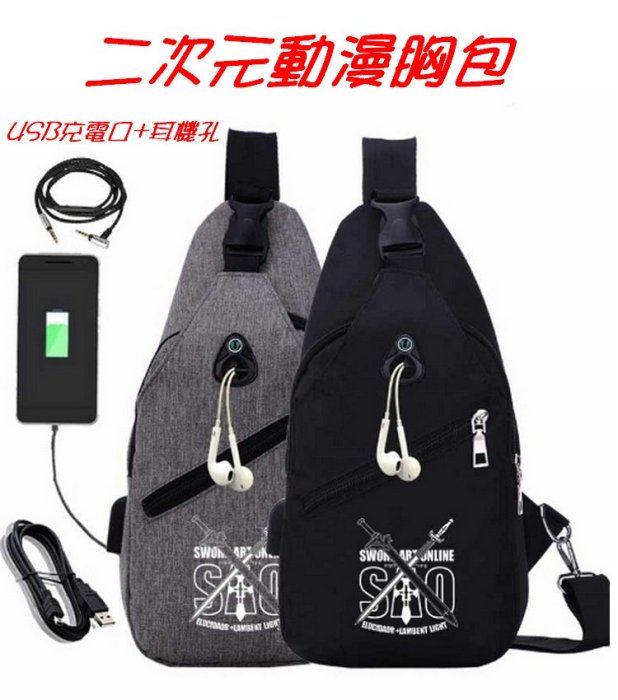 優寶購物《ubao.Tw》特貨品商城,黑貓宅配,取貨付款,動漫二次元 刀劍神域周邊挎包 胸包 斜背包 後背包 側背包 單肩包 肩背包 外置充電口 耳機孔 亞絲娜 桐人 | Yahoo拍賣