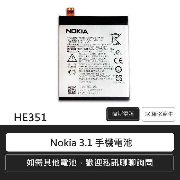 優寶購物《ubao.Tw》特貨品商城,黑貓宅配,取貨付款,☆偉斯科技☆諾基亞 Nokia2/3/3.1/5.1 Plus/ 6.1 Plus7.1/8.1手機電池 維修 | Yahoo拍賣