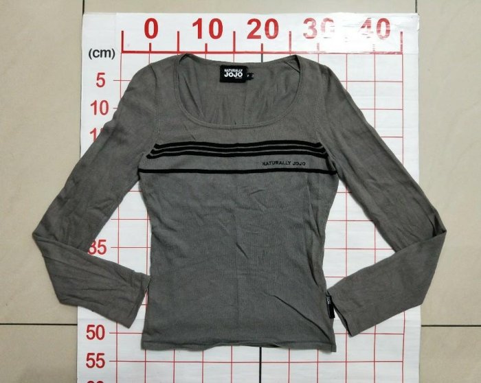優寶購物《ubao.Tw》特貨品商城,黑貓宅配,取貨付款,【二手衣櫃】NATURALLY JOJO 性感U領灰色長袖T恤 彈性棉質 合身貼身高腰曲線 簡約字母印花 1090426 | Yahoo拍賣
