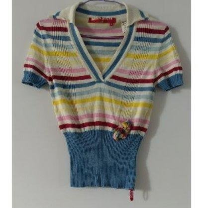 優寶購物《ubao.Tw》特貨品商城,黑貓宅配,取貨付款,(出清)義大利製 Miss Sixty 彩色(天藍/粉紅色/淡黃色)條紋V領短袖純棉針織衫。尺寸 S碼(適合國內穿S-M碼)有彈性 MaxMara agnesb | Yahoo拍賣