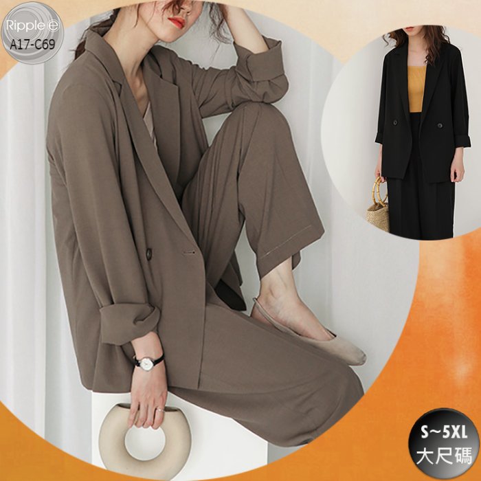 優寶購物《ubao.Tw》特貨品商城,黑貓宅配,取貨付款,大小尺碼 Rippleⓔ A17-C69 西裝外套 寬褲 寬鬆 兩件套裝 薄款 春秋 | Yahoo拍賣