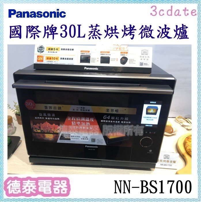優寶購物《ubao.Tw》特貨品商城,黑貓宅配,取貨付款,可議價~Panasonic【NN-BS1700】國際牌 30公升蒸氣烘烤微波爐【德泰電器】 | Yahoo拍賣