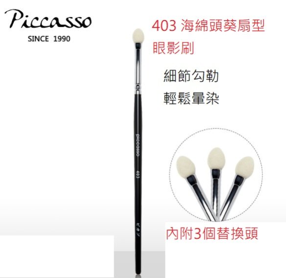 優寶購物《ubao.Tw》特貨品商城,黑貓宅配,取貨付款,PICCASSO 403 白色海綿頭葵扇型眼影刷 內附3個替換頭 眼影刷【愛來客】韓國PICCASSO授權經銷商 | Yahoo拍賣