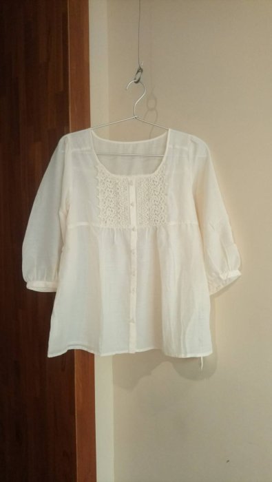 優寶購物《ubao.Tw》特貨品商城,黑貓宅配,取貨付款,earth music & ecology ♥日本品牌♥ 粉橘透膚 拼接蕾絲 蓬袖上衣 | Yahoo拍賣