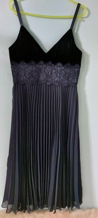 優寶購物《ubao.Tw》特貨品商城,黑貓宅配,取貨付款,(搬家出清)美國BCBG MAXAZRIA 黑絲絨洋裝小禮服,內有胸墊可調整肩帶百摺長裙,美碼4適合S到M碼 Hiroko Clathas 夏姿 MsGracy | Yahoo拍賣