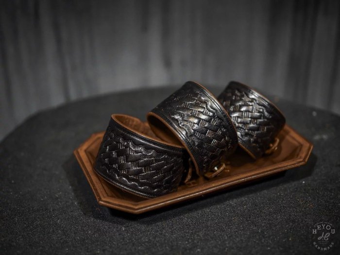 優寶購物《ubao.Tw》特貨品商城,黑貓宅配,取貨付款,BTO 台灣【HEYOU】職人手作 Tooled Leather Cuff 籃紋皮革手環 | Yahoo拍賣