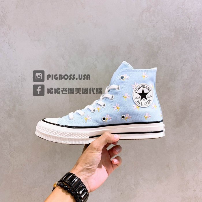 優寶購物《ubao.Tw》特貨品商城,黑貓宅配,取貨付款,【豬豬老闆】CONVERSE CHUCK 70 水藍 高筒 碎花 刺繡 帆布 休閒 運動 女款 570917C | Yahoo拍賣