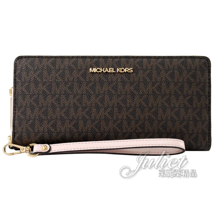 優寶購物《ubao.Tw》特貨品商城,黑貓宅配,取貨付款,【茱麗葉精品】全新精品 MICHAEL KORS 專櫃商品 Jet Set Travel 印花拉鍊長夾.深咖/淺粉 現貨 | Yahoo拍賣