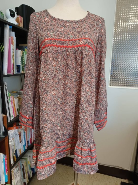 優寶購物《ubao.Tw》特貨品商城,黑貓宅配,取貨付款,LOWRYS FARM No.35 ♥日本品牌♥ 橘色系 可愛花卉滿版 拼接下擺波浪造型 長袖洋裝 | Yahoo拍賣